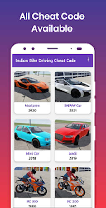 Indian Bike Driving Cheat Code, Android kullanıcıları için tasarlanmış bir yardımcı uygulamadır. Bu uygulama, popüler Indian Bike Driving 3D oyunu için güncel hile kodlarını sağlar ve oyunculara çeşitli araçları kolayca açma imkanı sunar. Uygulama, helikopter, uçak, süper arabalar ve daha fazlasının kodlarını içerir. Kullanıcı dostu arayüzü sayesinde, kodları kopyalamak ve oyunda kullanmak oldukça basittir. İnternet bağlantısı gerektirmeden çalışabilmesi, uygulamanın önemli bir avantajıdır.